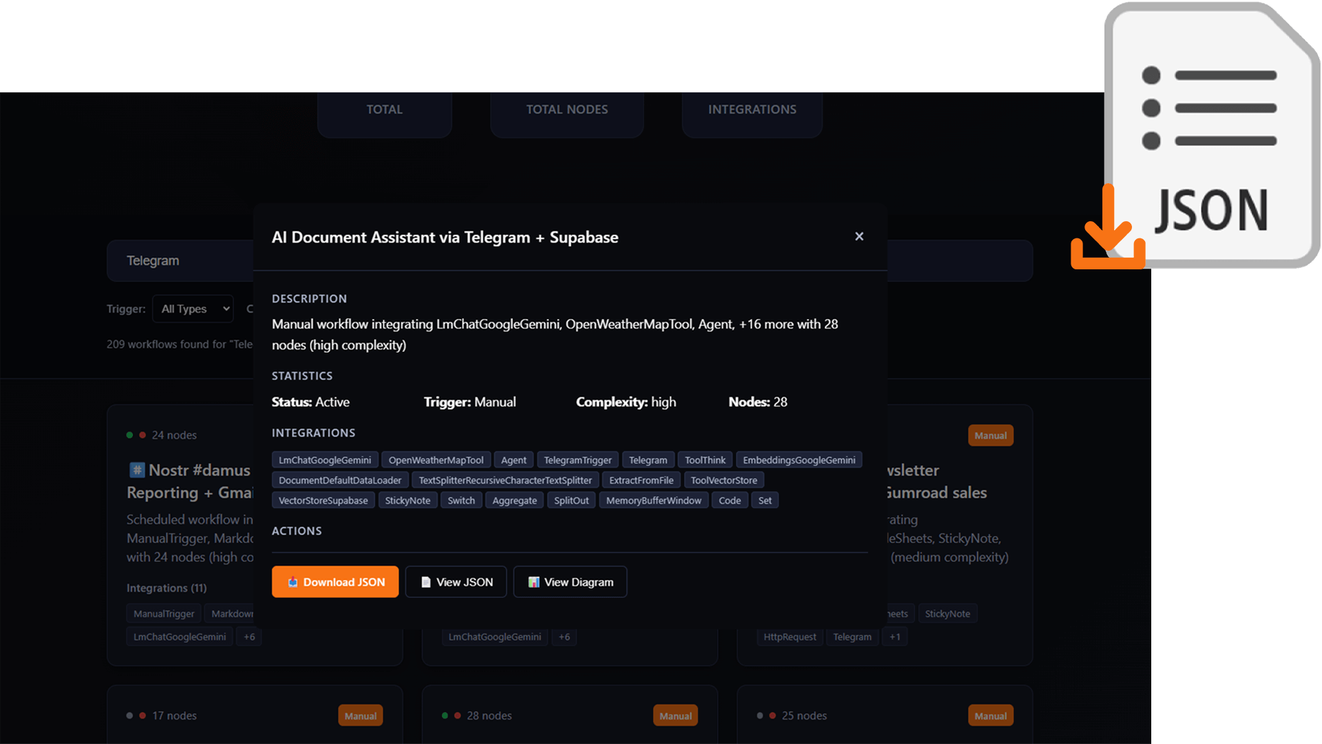 Honestly thought it was another pile of JSON. It’s not. This is a live portal—search is instant, filters actually help, and the diagram + JSON view lets me know in 10 seconds if a flow fits. First week I shipped 7 flows (Shopify→Slack alerts, Airtable lead capture, API enrichment, a scheduler with retries). Mostly “add creds, run.” Clean names, node counts up front, unlimited downloads = clutch. Thank you!